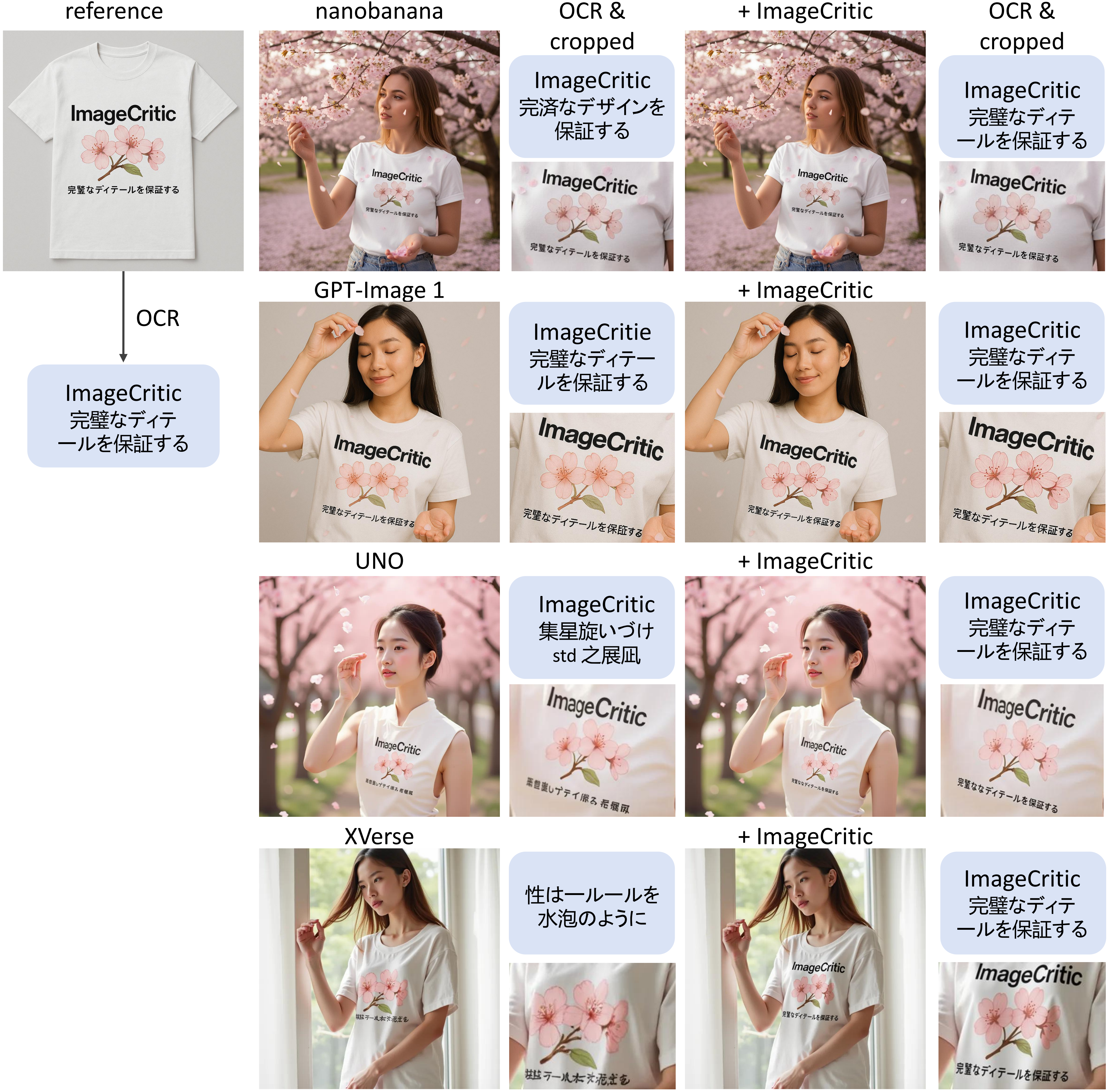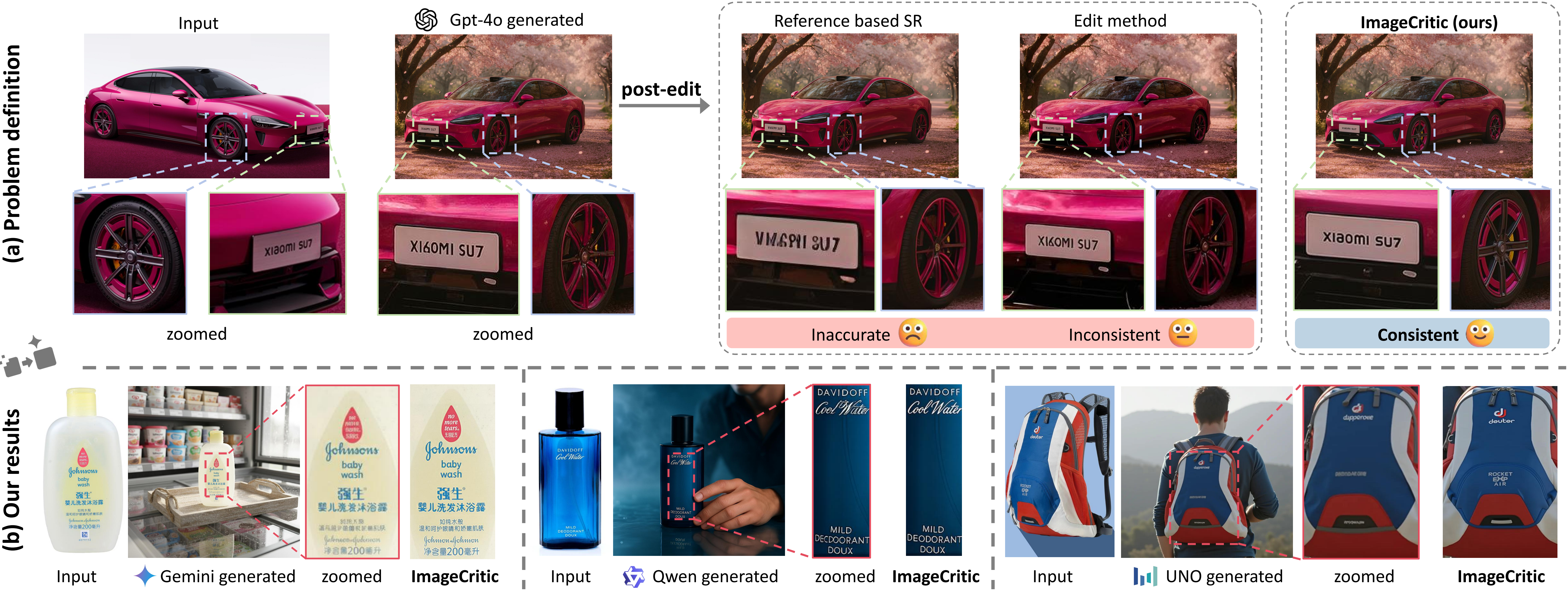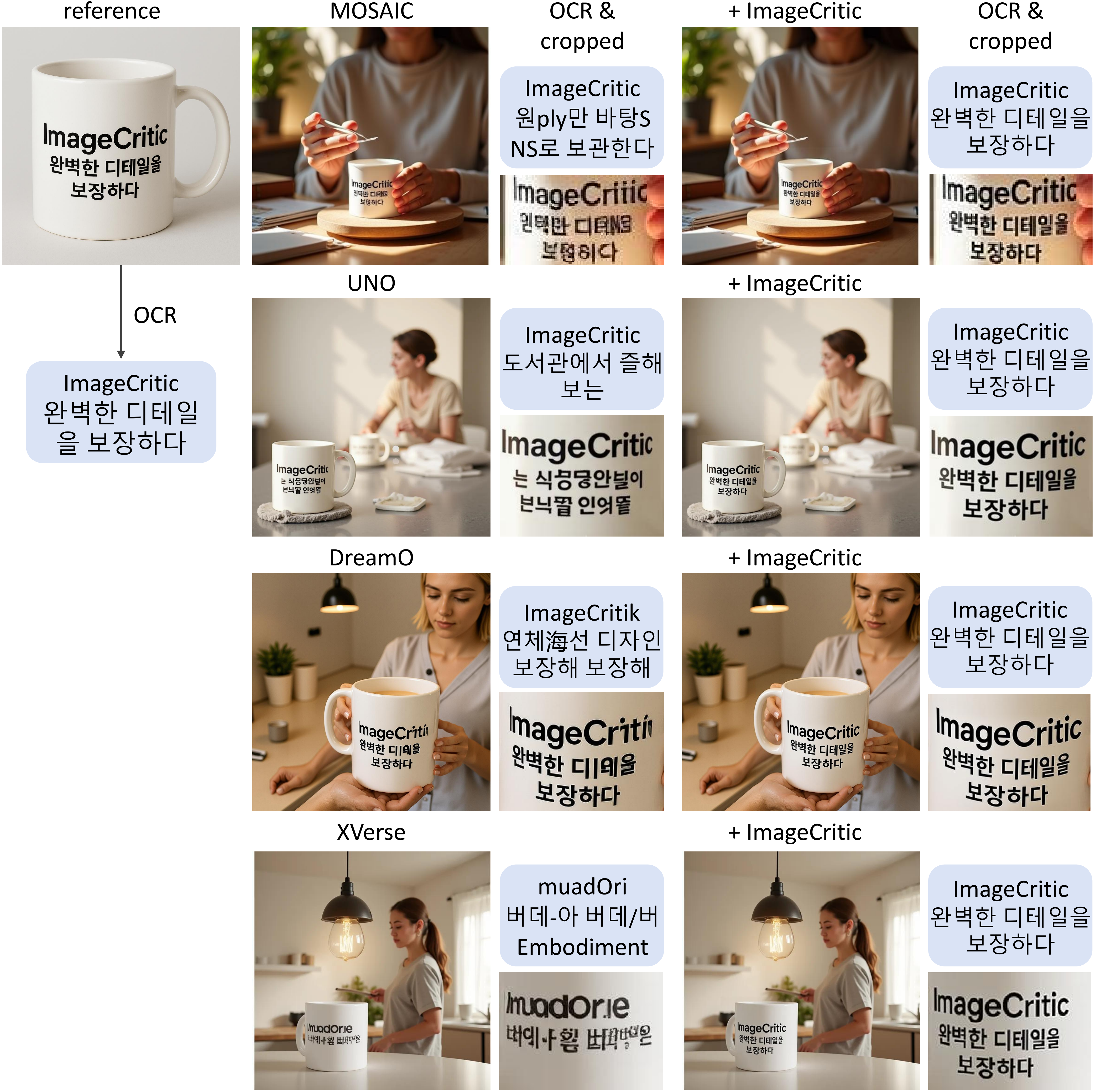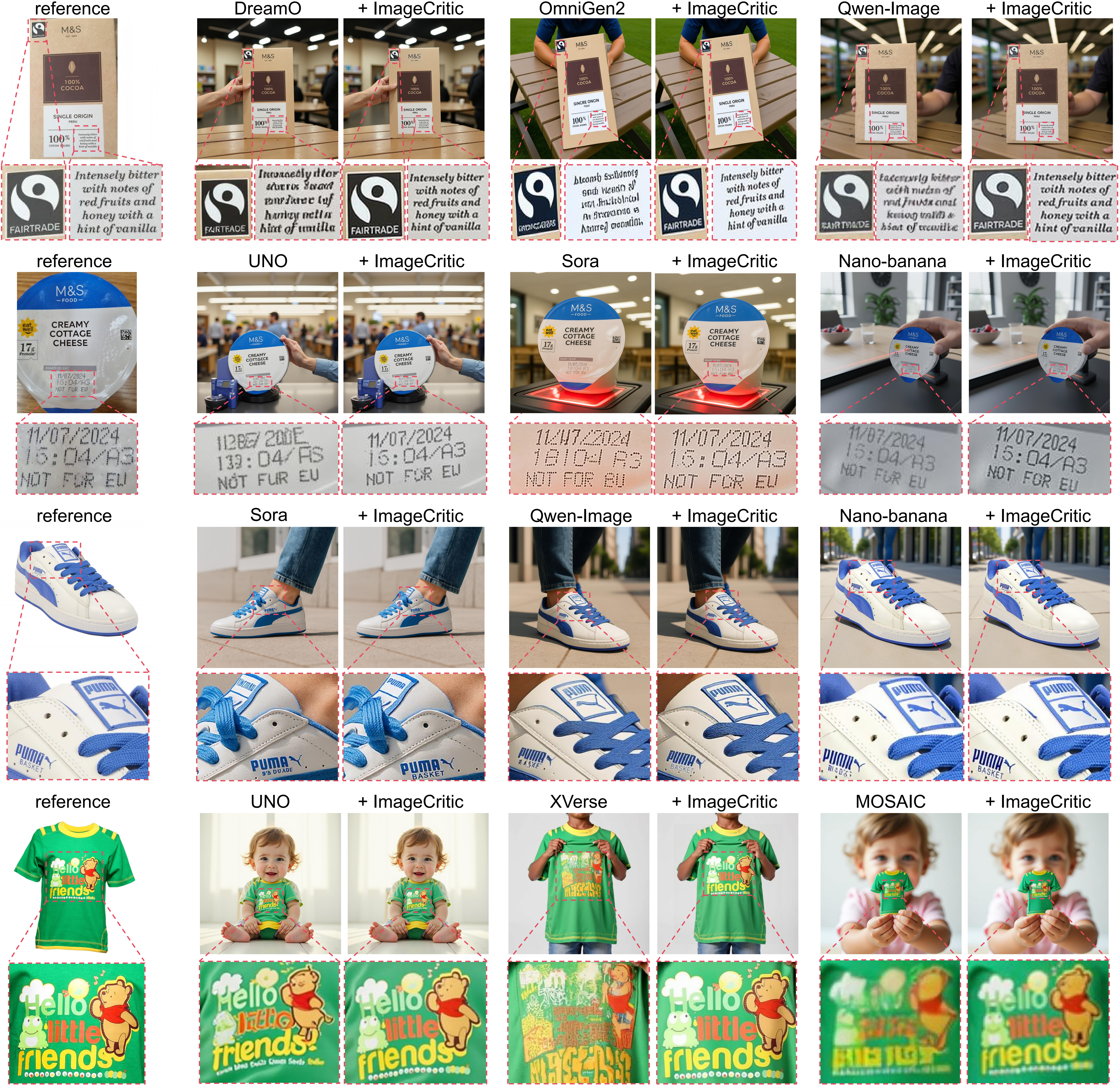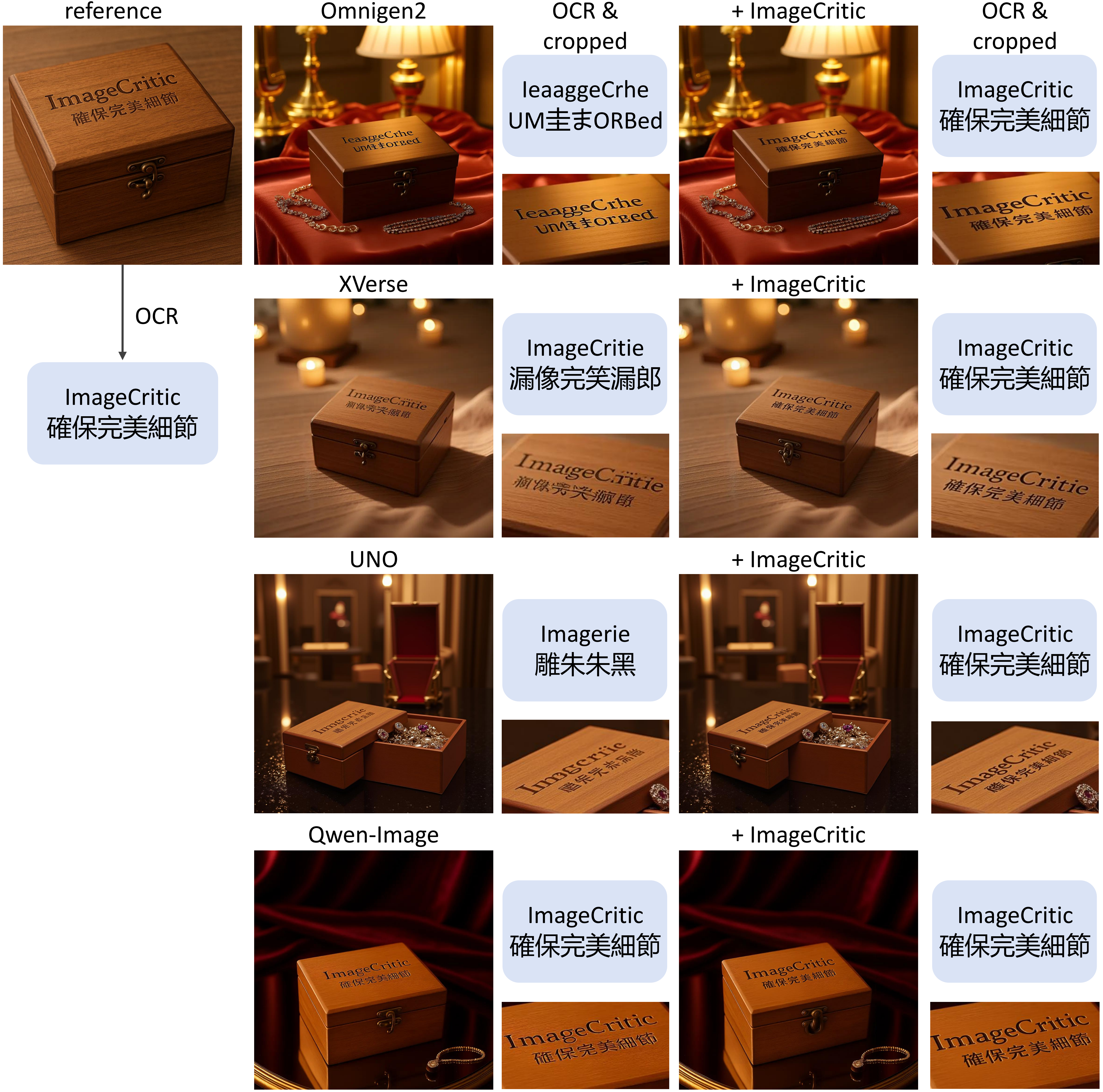 Previous works have explored various customized generation tasks given a reference image, but they still face limitations in generating consistent fine-grained details. In this paper, our aim is to solve the inconsistency problem of generated images by applying a reference-guided post-editing approach and present our ImageCritic. We first construct a dataset of reference-degraded-target triplets obtained via VLM-based selection and explicit degradation, which effectively simulates the common inaccuracies or inconsistencies observed in existing generation models. Furthermore, building on a thorough examination of the model's attention mechanisms and intrinsic representations, we accordingly devise an attention alignment loss and a detail encoder to precisely rectify inconsistencies. ImageCritic can be integrated into an agent framework to automatically detect inconsistencies and correct them with multi-round and local editing in complex scenarios. Extensive experiments demonstrate that ImageCritic can effectively resolve detail-related issues in various customized generation scenarios, providing significant improvements over existing methods.
